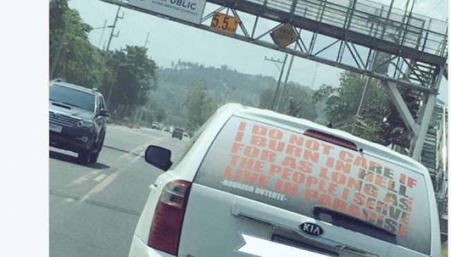 Don't take a picture while driving but this one's worth the risk. YEAH!! #Duterte2016 #DuterteForPresident pic.twitter.com/WhmzfmG9Dn