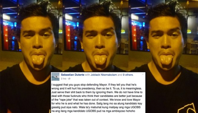 I suggest that you guys stop defending Mayor. If they tell you that he’s wrong and it will hurt his presidency, then so be it. To us, it is meaningless. Just serve their shit back to them by ignoring them. We do not have time to deal with those fucknuts who think their candidates are better just because of the “rape joke” that was taken out of context. We know and love Mayor for who he is and what he has done. Salig lang mo sa atung kandidato kay gasalig pud siya nato. Wala ta’y mabuhat kung malipay ang mga UGOBS na ang ilang mga kandidato UGOBS pud na mga ambisyoso hohoho