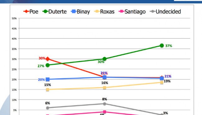 NewsStories Duterte leads the Presidential Race in The Standard poll By Angelo M. - April 7, 2016 0 284 FacebookTwitterPinterestWhatsApp