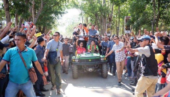 Presidential candidate and Davao City Mayor Rodrigo Duterte warmly welcomed and clamored by thousands of people as he visits Kaamulan Festival in Malaybalay, Bukidnon.