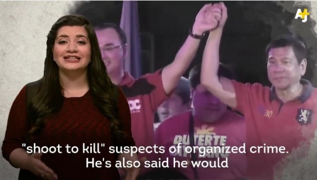 NewsStories Al Jazeera Media Network ‘AJ+’ criticize President Duterte’s War on Drugs By Angelo M. - September 1, 2016 0 308 FacebookTwitterPinterestWhatsApp AJ+: 'Why is the U.S. helping fund the Philippines' deadly war on drugs?' https://www.facebook.com/ajplusenglish/videos/788929604581882/