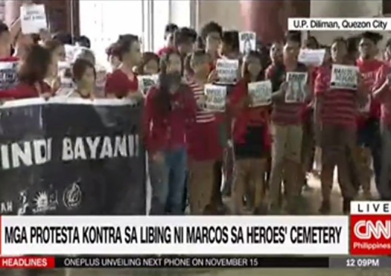 NewsStories Tuloy ang protesta kontra sa libing ni Marcos sa Heroes’ cemetery By Trending.ph Staff - November 11, 2016 0 380 FacebookTwitterPinterestWhatsApp https://www.facebook.com/CNNPhilippines/videos/1812384049001486/
