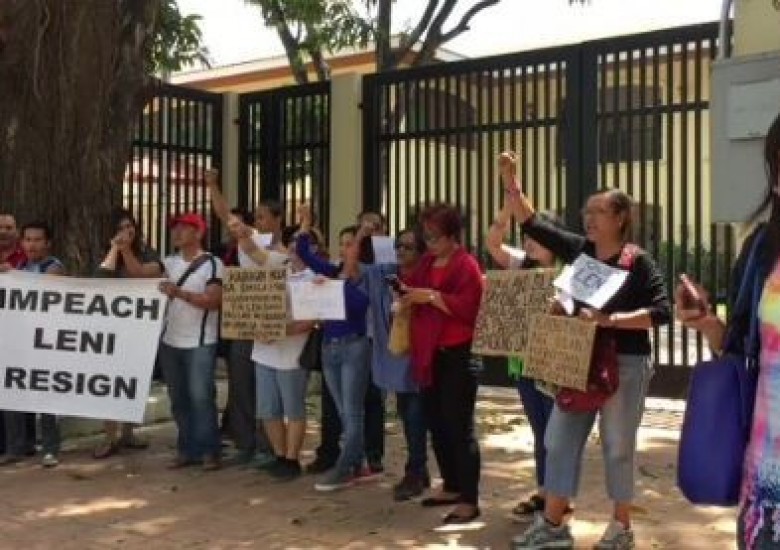 Sumugod sa tanggapan ni VP Leni Robredo ang isang grupo upang manawagan na magbitiw ito sa puwesto.