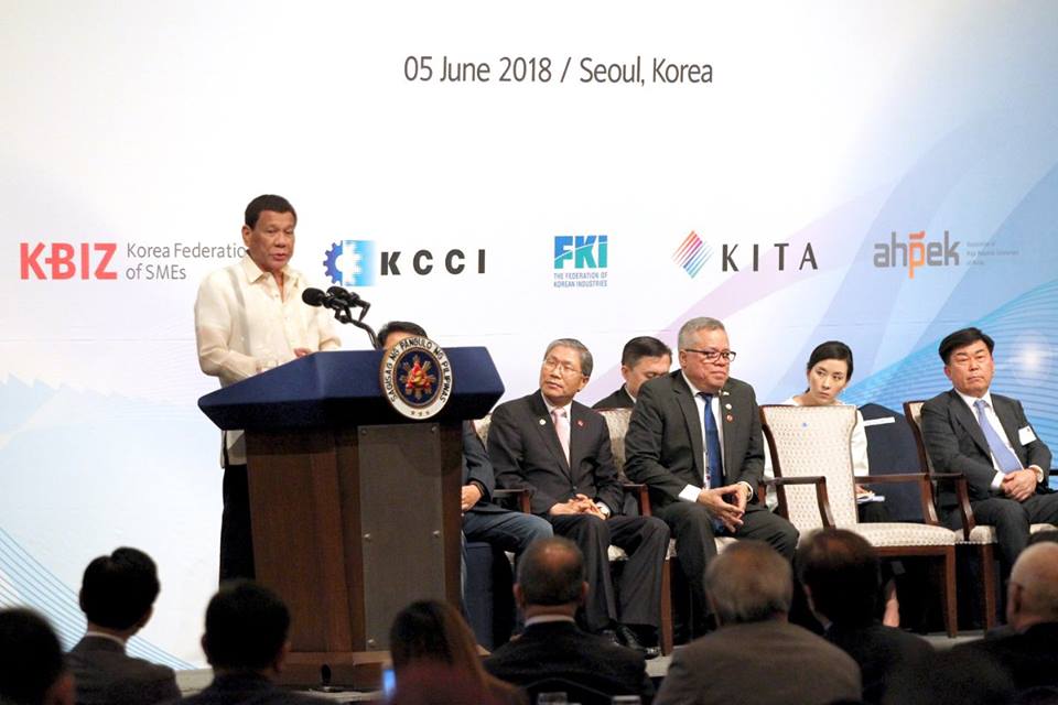 President Rodrigo Duterte, in his speech during the Philippines-Korea Business Forum and Luncheon at the Lotte Hotel in Seoul, Republic of Korea on June 5, 2018, assures Korean companies that their business ventures in the Philippines will be safe as he continues to strengthen law and order as well as eliminate corruption in government.