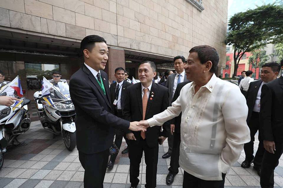 President Rodrigo Duterte meets with TV personality Ryan Bang on the sidelines of the Philippines-Korea Business Forum and Luncheon at the Lotte Hotel in Seoul, Republic of Korea on June 5, 2018.