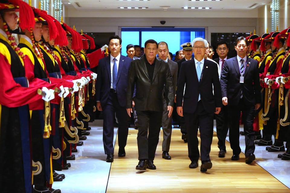 President Rodrigo Duterte is accompanied by Korean officials as he is accorded with foyer honors upon his arrival at the Incheon International Airport in Seoul, Republic of Korea on June 3, 2018.