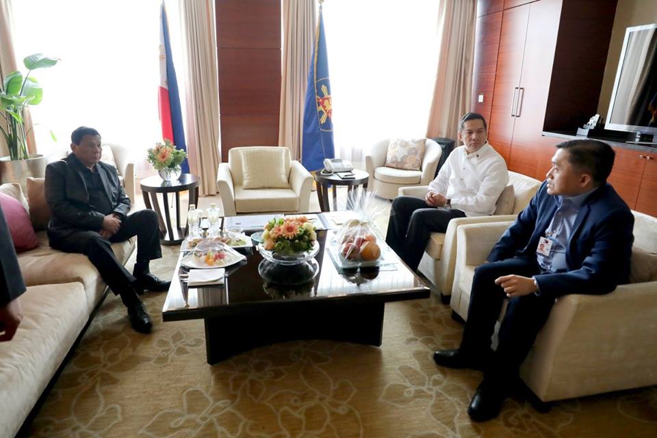 President Rodrigo Duterte discusses matters with Philippine Ambassador to the Republic of Korea Raul Hernandez and Sec. Bong Go while at a hotel in Seoul, Republic of Korea on June 3, 2018.
