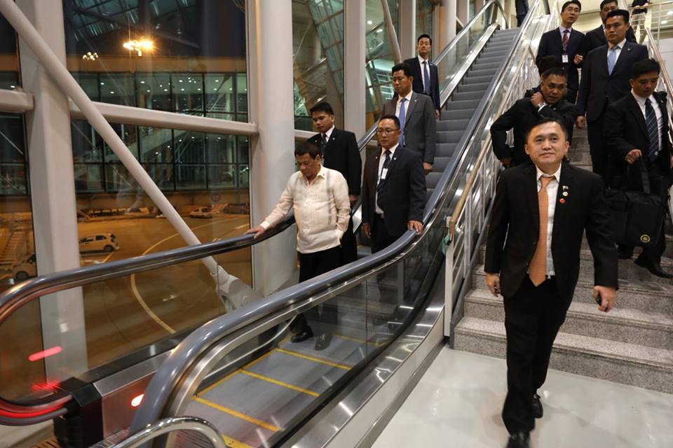 President Rodrigo Duterte arrives at the Ninoy Aquino International Airport on June 5, 2018 following a successful three-day official visit to the Republic of Korea. Joining the President is Sec. Bong Go of the Office of the Special Assistant to the President.