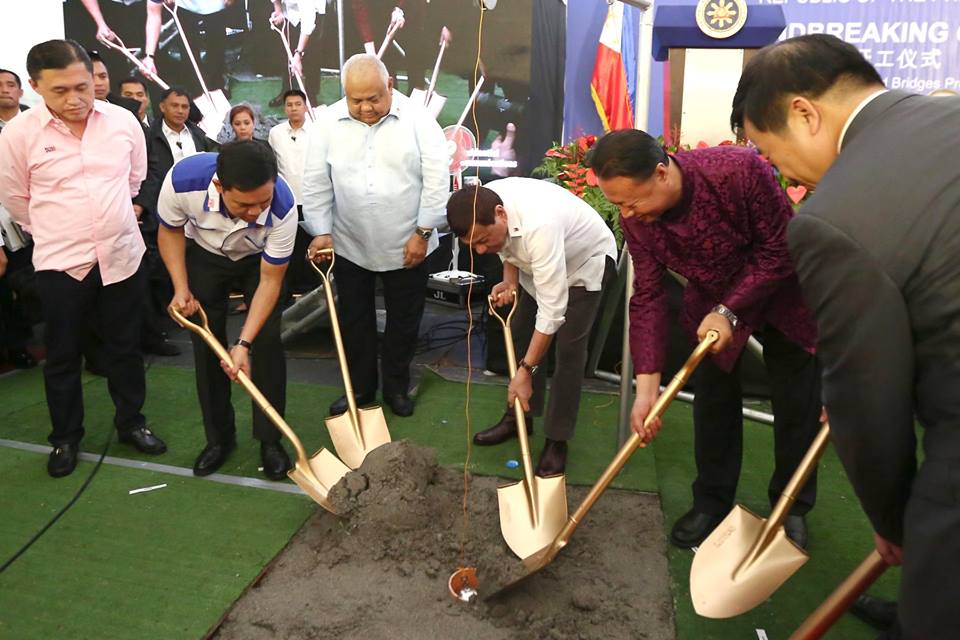 President Rodrigo Roa Duterte leads the groundbreaking ceremony of the Binondo-Intramuros Bridge and Estrella-Pantaleon Bridge in Intramuros, Manila on July 17, 2018. Assisting the President are Sec. Bong Go of the Office of the Special Assistant to the President, Public Works and Highways Secretary Mark Villar, Executive Secretary Salvador Medialdea, and Chinese Ambassador to the Philippines Zhao Jianhua.