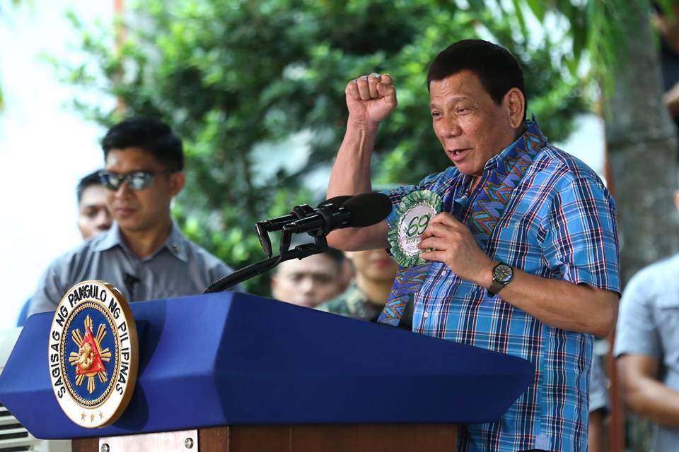 President Rodrigo Roa Duterte raises his fist as he exclaims, 'Mabuhay ang Ipil!' in his speech during the celebration of the ‘69th Araw ng Ipil’ at the Ipil Municipal Plaza in Zamboanga Sibugay Province on July 26, 2018.