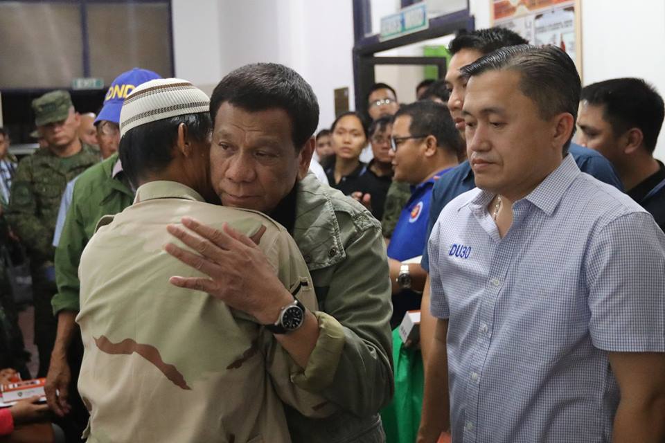 President Rodrigo Roa Duterte comforts the kin of one of the victims who died during the car bomb attack in Lamitan City, Basilan last July 31, 2018. The President condoled with the kin of the victims at Camp Navarro General Hospital in Zamboanga City on August 4, 2018. Joining the President is Sec. Bong Go of the Office of the Special Assistant to the President.