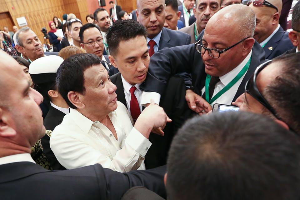 President Rodrigo Roa Duterte interacts with Jordanian businessmen after attending the Business Forum to witness the signing of nine Letters of Intent and two Memoranda of Understanding at the Intercontinental Hotel in Amman, Jordan on September 6, 2018.