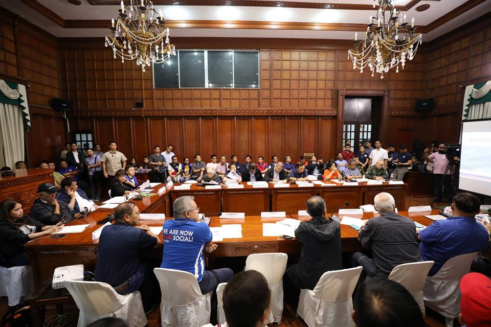 President Rodrigo Roa Duterte presides over a situation briefing with the members of his cabinet and local government officials at the Provincial Capitol in Laoag, Ilocos Norte on September 16, 2018 to discuss the disaster response measures on the aftermath of Typhoon 'Ompong.'