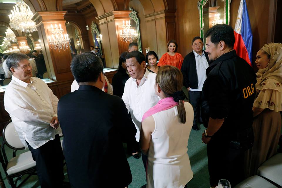 President Rodrigo Roa Duterte greets the officials from the Department of Interior and Local Government (DILG) and the Mayor Rodrigo Roa Duterte–National Executive Coordinating Committee during a meeting at the Malacañan Palace on September 25, 2018.