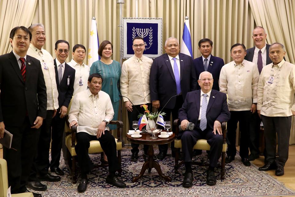 President Rodrigo Roa Duterte and the members of his delegation pose for a photo with State of Israel President Reuven Rivlin at the Official Residence of the President in Jerusalem on September 4, 2018.