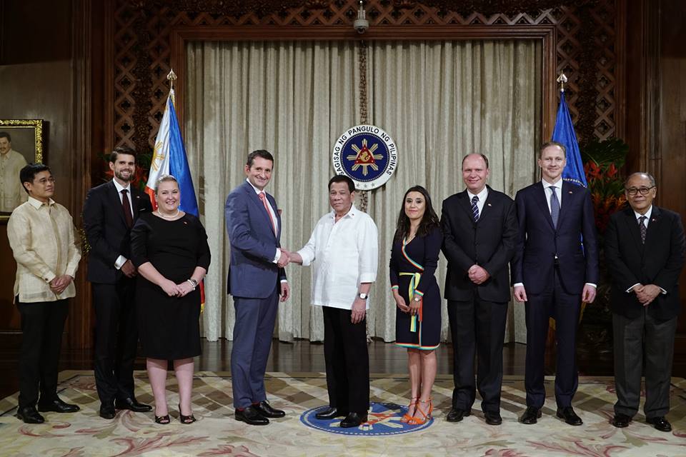 President Rodrigo Roa Duterte receives the credentials of Ambassador-Designate of Norway to the Philippines Bjørn Staurset Jahnsen at the Malacañan Palace on September 25, 2018.