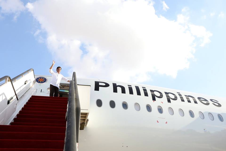 President Rodrigo Roa Duterte waves goodbye to the send-off party before boarding the plane bound for the Philippines at the Queen Alia International Airport in Amman to cap off his official visit to the Hashemite Kingdom of Jordan on September 7, 2018.
