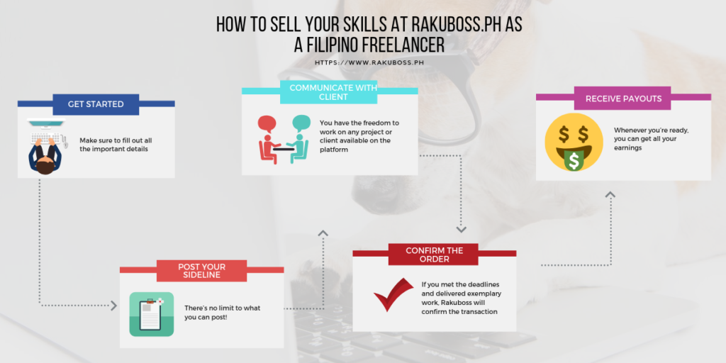 Register a Rakuboss account. Fill out all the important details. Show clients who you are, what you do, and what Sidelines you’re offering.Be transparent! Rakuboss values honesty in order to serve clients and freelancers better. Penalties will be applied to profiles that are made to be deceiving.