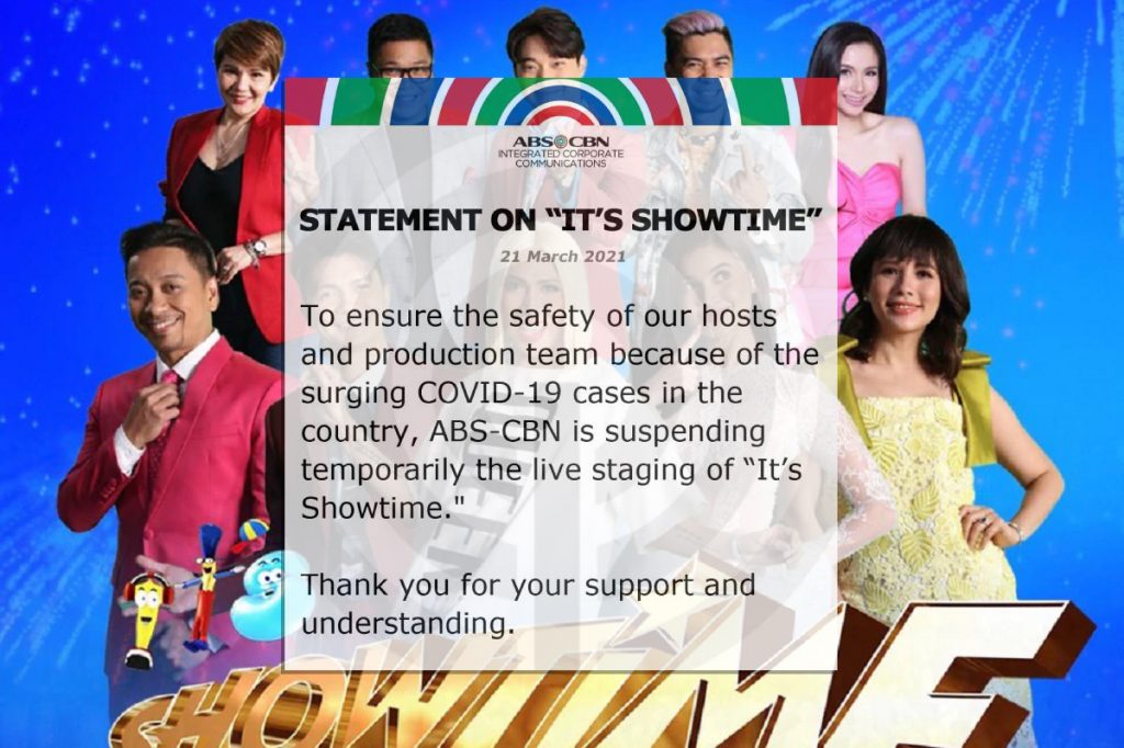 Featured Photo Source: ABS-CBN suspends live staging of ‘It’s Showtime’ amid COVID-19 surge