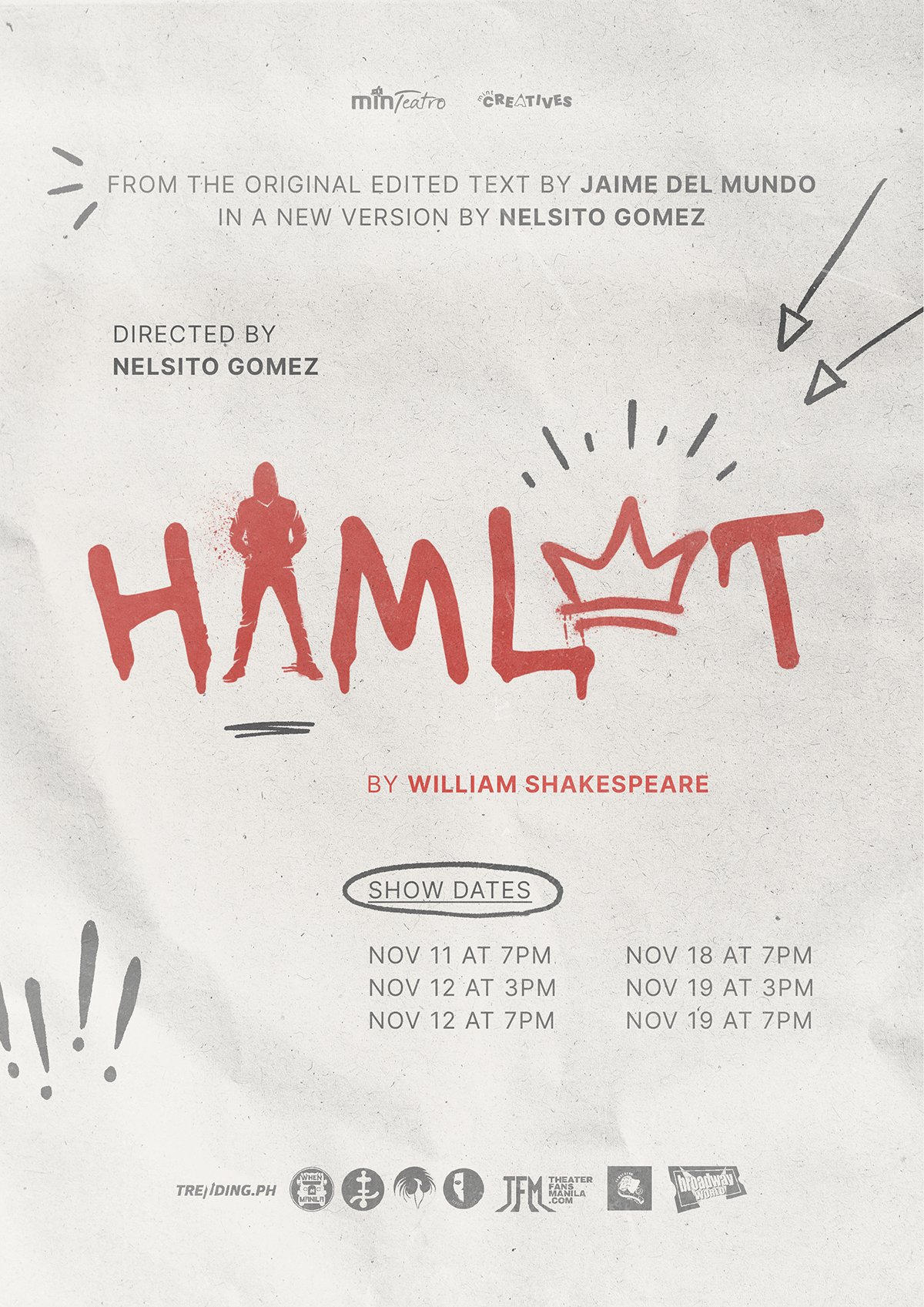 The show dates for “Hamlet” will be on November 11 & 18 at 7 PM and November 12 & 19 at 3 PM and 7 PM. All shows will still be staged at MINT College Mckinley Campus, Playhouse with tickets priced at 300 pesos for outsiders, 280 pesos for MINT students, and 250 for members of the organization; MINTeatro.