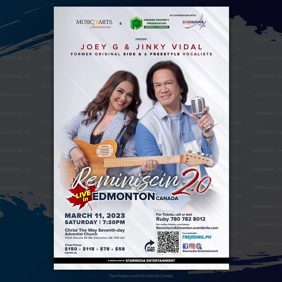 Starmedia is proud to finally bring the most requested duo – JOEY G. (Side A) and JINKY VIDAL (Freestyle) to CANADA in REMINISCIN’ 2.0! Join us in Edmonton, Alberta and sing their hits like Forevermore, Hold on, Tuloy Pa Rin, Before I Let You Go, So Slow, and many more!